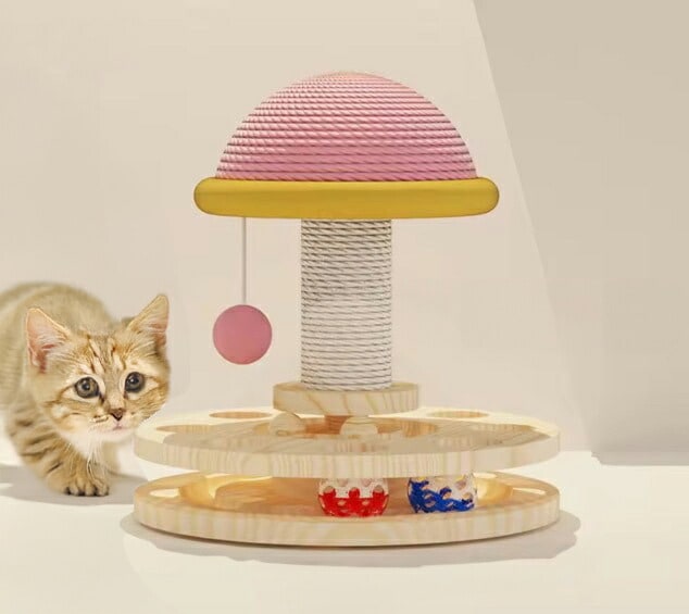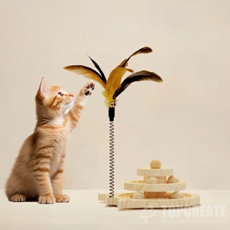 【木製】羽根つき 猫じゃらしターンテーブル 21×20×10cm