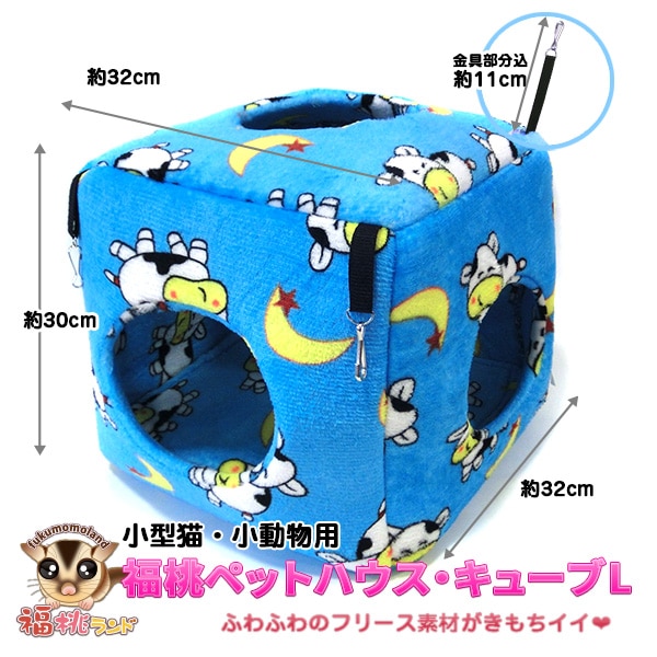 小型猫・小動物用 福桃ペットハウス・キューブL カウブルー 福桃ランドオリジナル