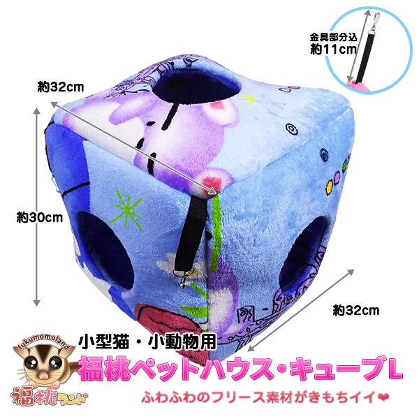 小型猫・小動物用 福桃ペットハウス・キューブ L ファニーブルー 福桃ランドオリジナル