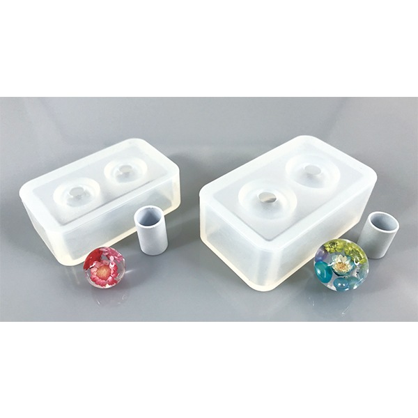 | 商品詳細 | 極限まで球体に近いのを2個作れるシリコーン製のモールド。 付属パイプを使えば大き目の素材も入れやすい。 伸びるシリコーン素材を使用しているので球体がスルッと取り出せます。 本体サイズ:W63×H39×D20mm 拡張パイプ:直径12×20mm |