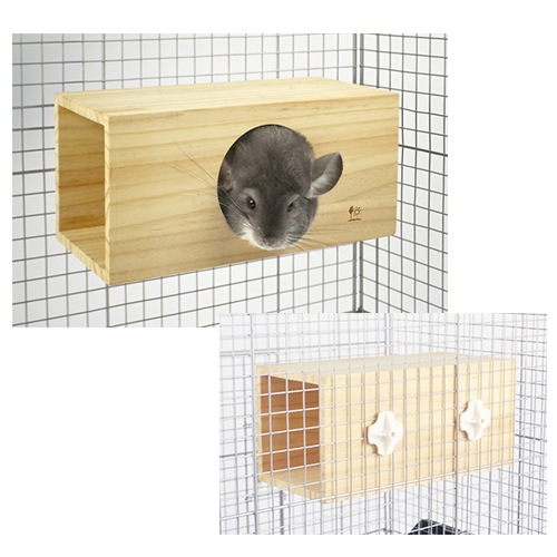 ハムスター・シマリス・モモンガなどの小動物用の木製ハウス。 |