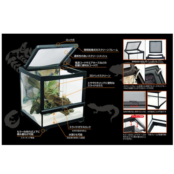 爬虫類・両生類飼育に便利な機能が充実した飼育ケースです。 |