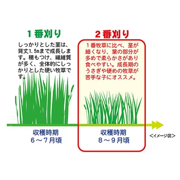 | 2番刈りチモシー牧草の中でも、柔らかくしなやかな部分を選りすぐった、うさぎやモルモット、チンチラやデグー等の幅広い草食小動物の基礎フードに最適な牧草です。 丁寧に育てたこだわりの牧草を、燻蒸処理を行わずにアルミ包装でパックした、安心なチモシー牧草です。 消化性の高い繊維質を多く含み、歯の全体でしっかり噛めるので咬み合わせをサポートし、豊富な繊維質がお腹の中を刺激して健康的な腸内環境を維持します。 さらに、低カルシウム・低カロリーで、葉の部分が多くなるために嗜好性も高いので、成長期や、毛換え時期や食欲低下時、硬めの牧草が苦手な子にも食べやすく、牧草食のトレーニングにもぴったりの牧草です。 |