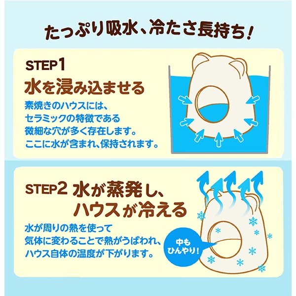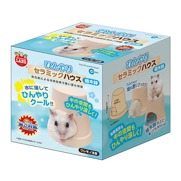 | 水が蒸発する時の気化熱を利用した、ひんやり涼しいセラミック素材の植木鉢型ハウスです。 ・ペットの暑さ対策・夏バテ対策にピッタリです。 ・水をよく吸収し、水が蒸発する際に熱を奪うことによってハウスが冷たくなります。 ※キメの細かい素焼きのセラミック製で無数の穴が水を吸収します。 ・ハウス全体が冷えるため、ハウス内の空間がひんやり涼しくなります。 |