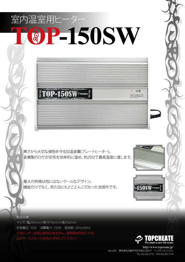 | ご注意 | ※このヒーターは必ずサーモスタットと組み合わせご使用ください。 |