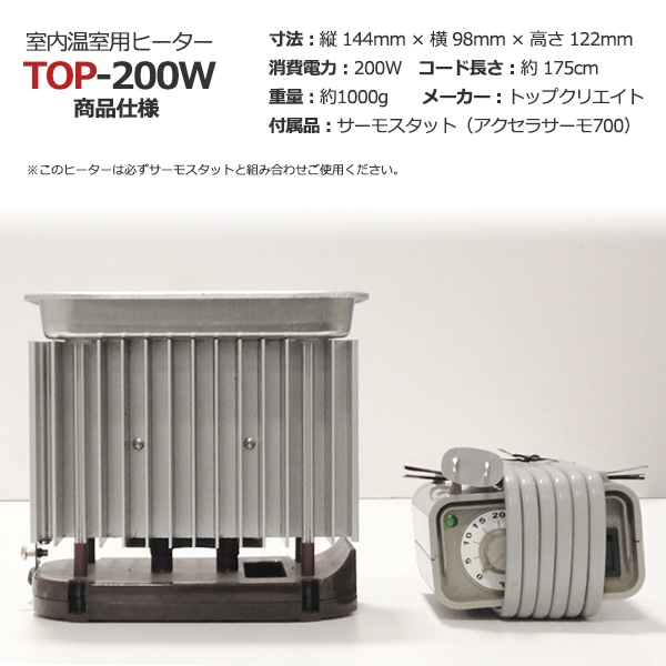 | ご注意 | ※このヒーターは必ずサーモスタットと組み合わせご使用ください。 |