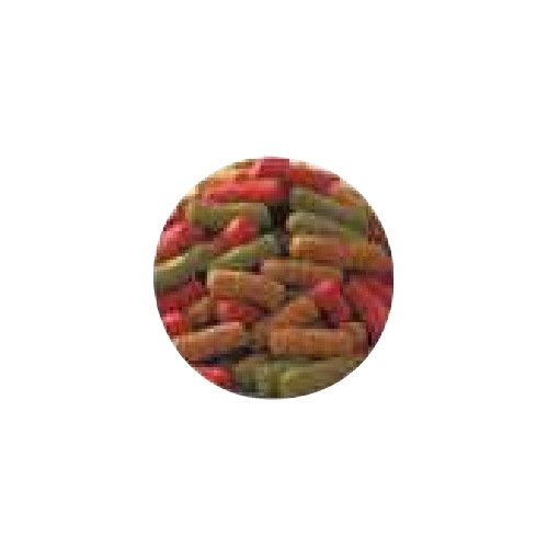 | 主な主原料 | 小麦粉、コーンミール、家禽類副産物ミール、大豆ミール、リンゴ繊維、炭酸カルシウム、塩、ビタミンC、塩化コリン、乾燥ビード果肉、植物油、メチオニン、スピルリナ、ビタミンE補助剤、炭酸コバルト、イノシトール、他 |