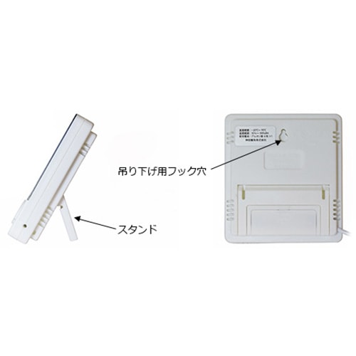 | 商品詳細 | 文字表示が大きく、確認しやすいデジタル式温湿度計です。 時刻設定、アラーム設定、温度・湿度表示など操作性に優れた大き目なボタンで簡単に操作ができます。 スタンド、吊り下げ用フック穴があるため、環境に合わせた2WAYの設置が可能です。 |