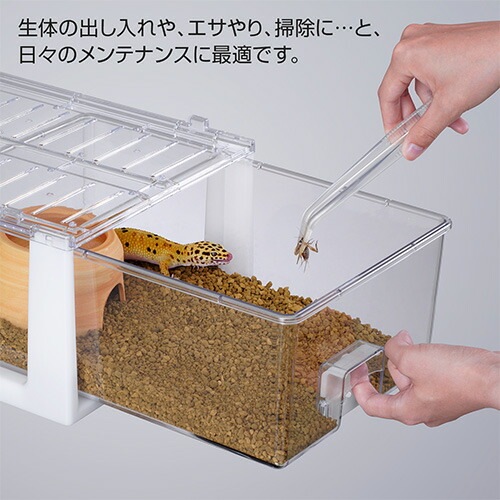 上からも、横からも、飼育スペースに十分な明るさが得られるクリアな本体ケース&天板。 | |