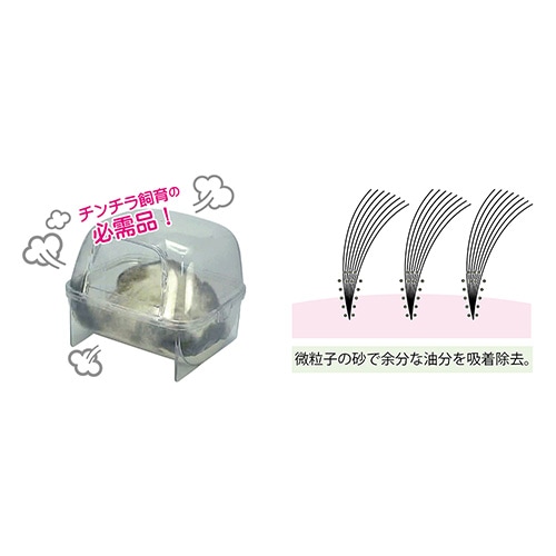 | チンチラパウダーは、汚れの吸着に優れる天然の硬質ゼオライトを、チンチラに適した微粒砂に仕上げ、さらに砂埃となって飛び散りやすい微細な細粒を取り除いた約0.1~0.3mmの砂目に整えました。滑らかなパウダー状の砂目で、砂埃が少ないプレミアムな浴び砂です。 | |