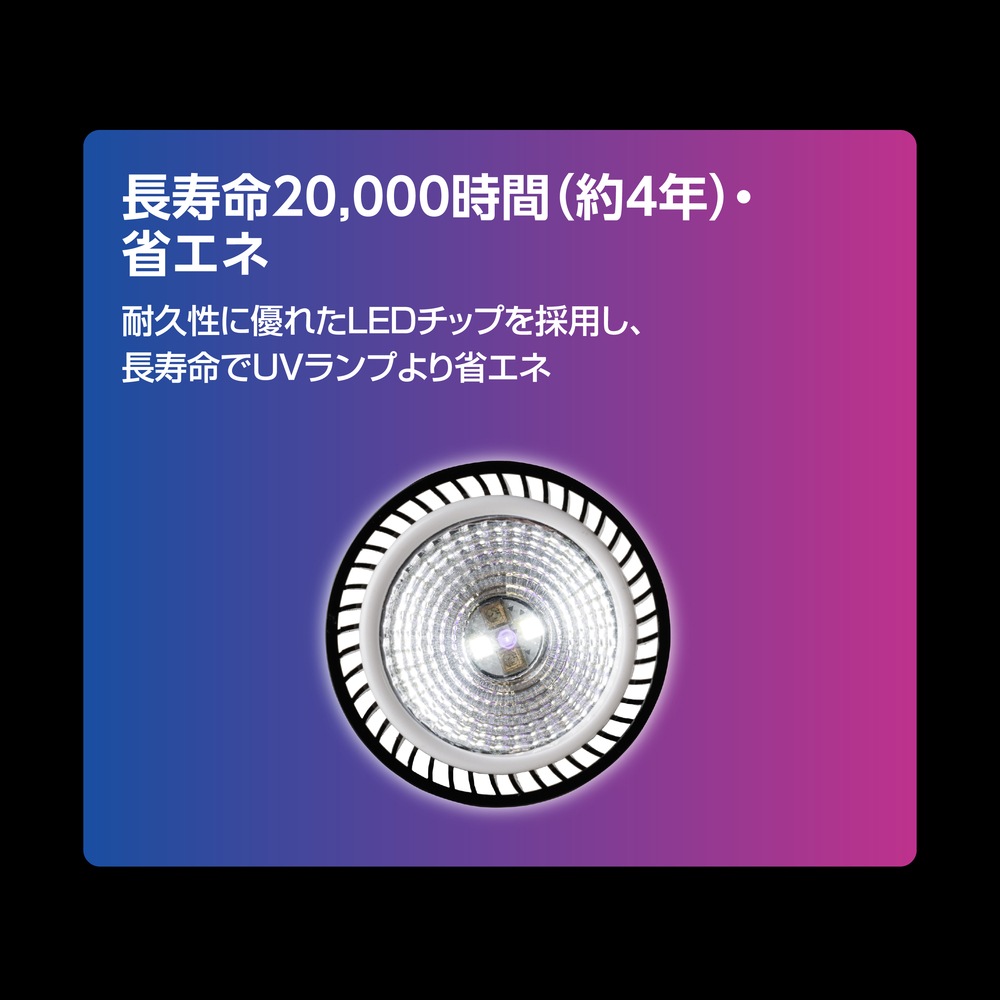 紫外線を狭い範囲に集中照射。ピンポイントで照らせます